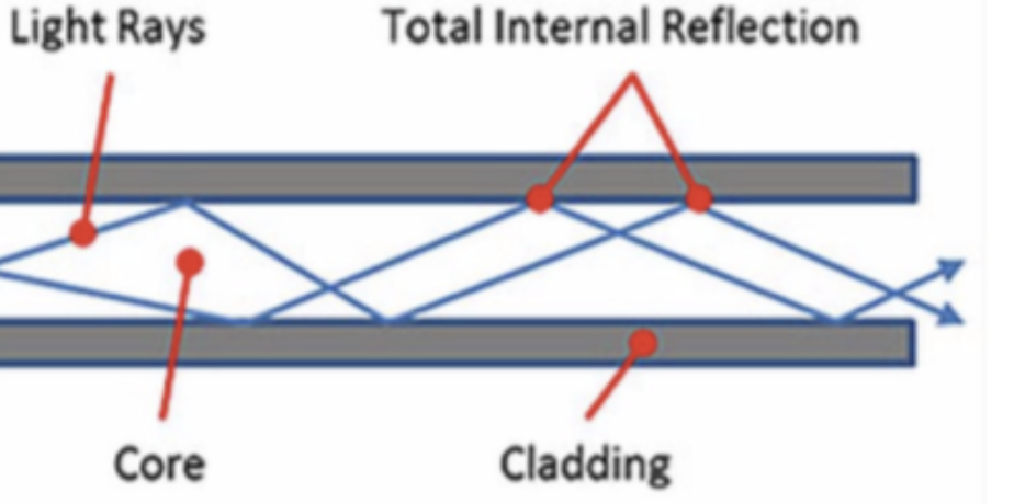 Long, thin strands of glass or plastic that can light undergoes total internal reflection from one end to other end