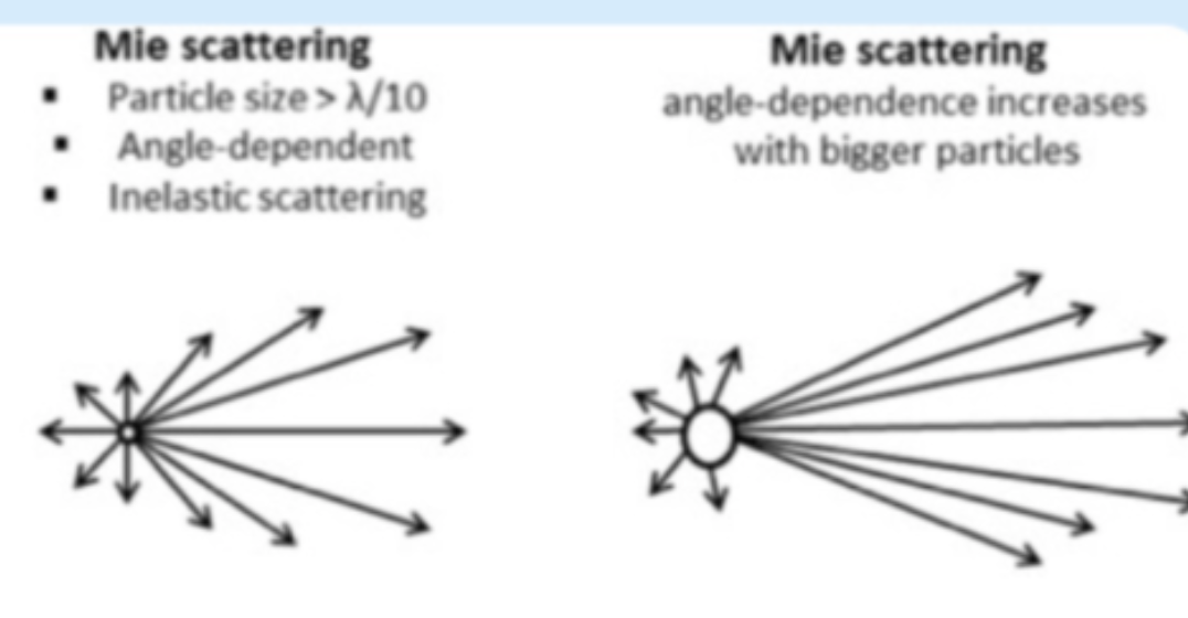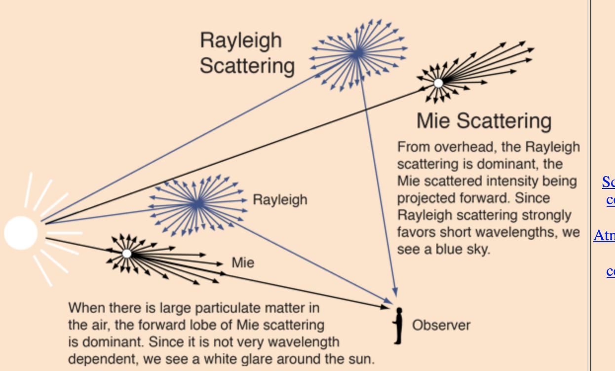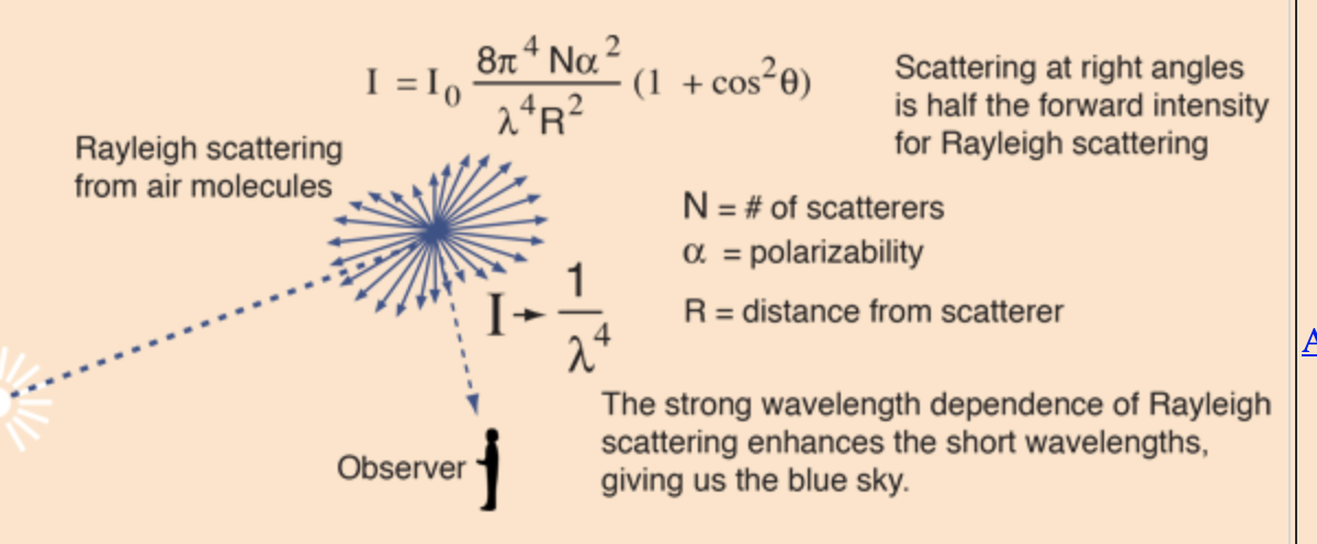 -> Rayleigh scattering is wavelength dependent with shorter wavelengths being more scattered.