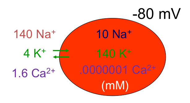 Active transport for the uptake of 2K and extrusion of 3Na against their concentration gradients