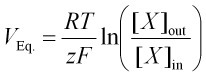 The Nernst equation (ion valence z in equilibrium at the nernst equilibrium)