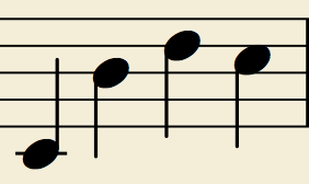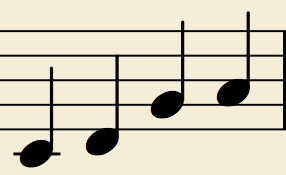 repeated pitch, ascending, ascending