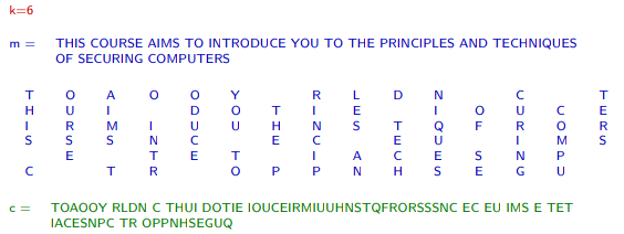 Write plain text in columns of size k, ciphertext is the concatenation of resulting rows