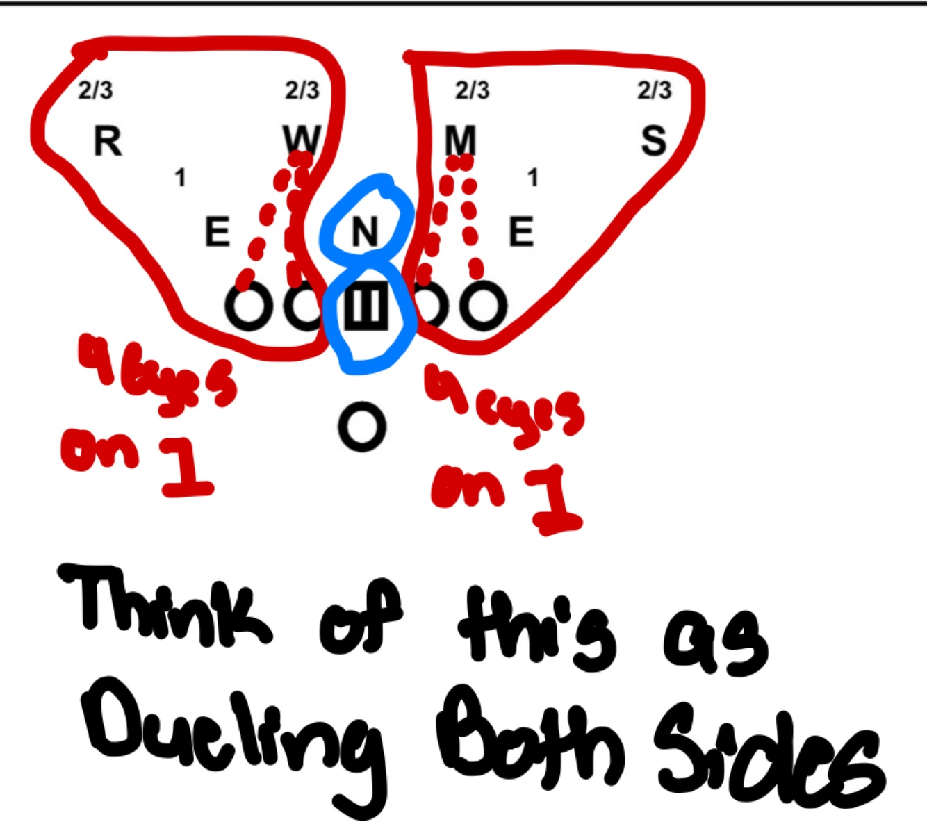 ANYTIME WE SEE A 3 DOWN FRONT WE MUST ALWAYS GIVE THE LINE A CALL SO THEY KNOW WHO YOU WANT THEM TO ID. SORT, RODGER/LARRY ARE OUR CHOICES. THE DEFAULT CALL IS SORT