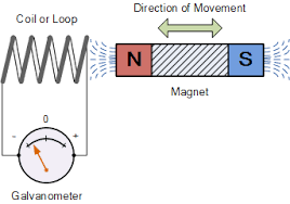 When a magnet is moved in and out of a coil, the magnetic field lines of the magnet cut the coil at 90º , which induces an a.c. current.