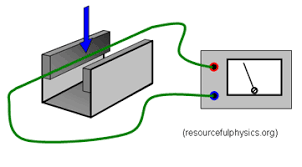When a wire is moved downward through a magnetic field, the wire cuts the magnetic field lines at 90º and induces a current in the wire.