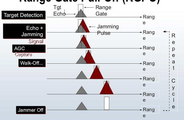 Sends out jamming pusles in-between incoming pulses, which cause a constant gain at the enemy receiver. This makes it appear as though it is on target.