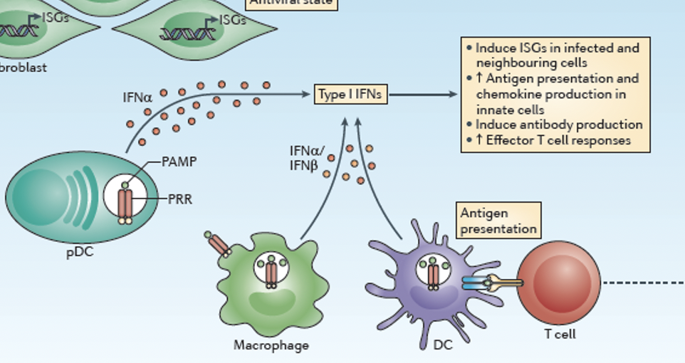 Viral PAMS (Pattern Associated Molecular Patterns) get recogised by PRR (Pattern recognitiion receptors)
