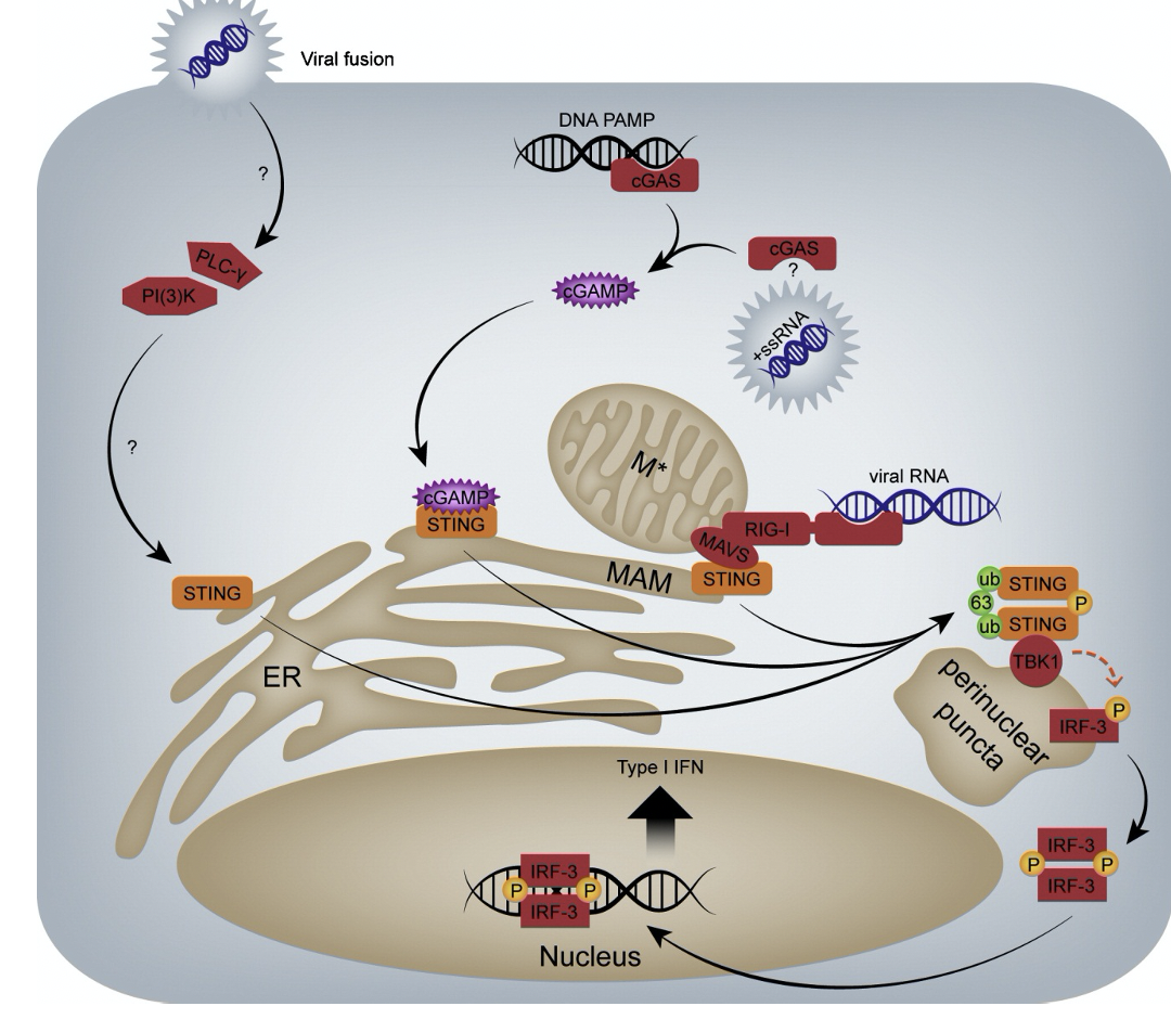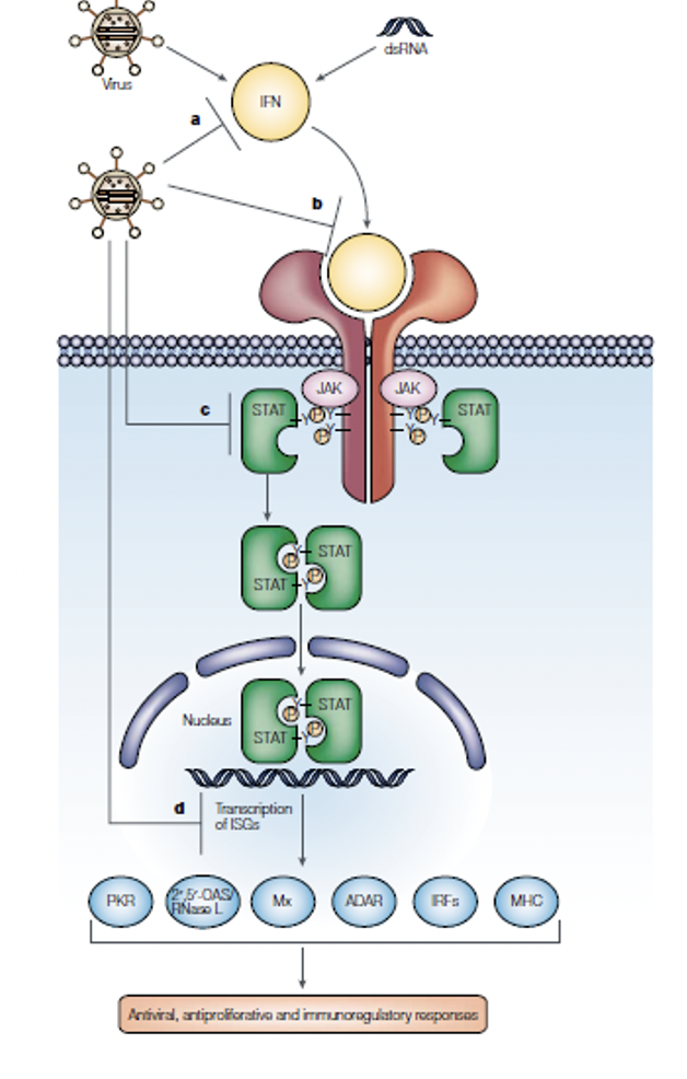 Leading to: activation of downstream mechanism and induces transcription of 100s of antiviral mediators
