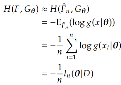For large sample size n, the cross-entropy π»(πΉ, πΊπ½) is approximated by the empirical cross-entropy where the expectation is taken with regard to πΉΛπ rather than πΉ