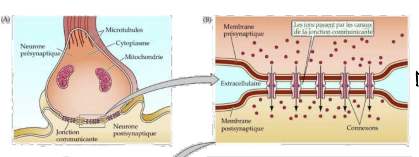 Décrit la transmission synaptique électrique?