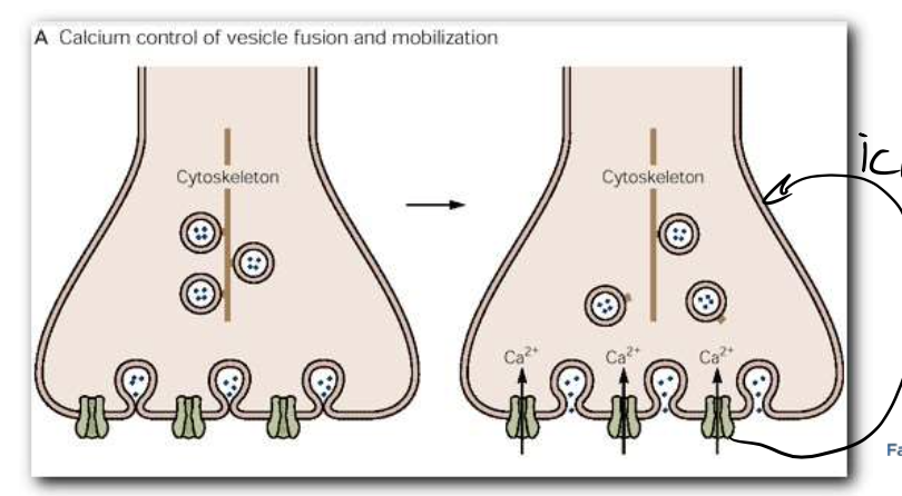 Décrit le processus de libération des vésicules par le calcium