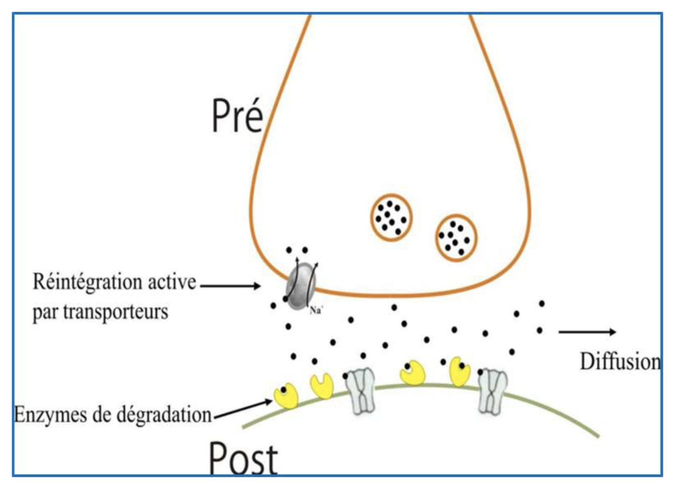 2) Recapture par les terminaisons nerveuses ou cellules gliales.