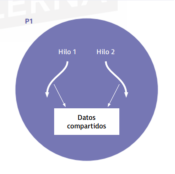 Cuando un hilo modifica un dato en la memoria, el resto de hilos del proceso pueden obtener este valor modificado.
