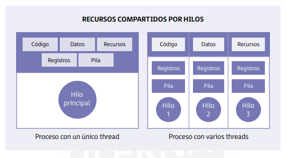 Un proceso puede tener varios hilos de ejecución que realizarán subtareas del proceso principal que los ha creado.
