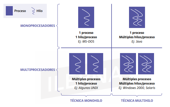 Procesos. Relación con hilos