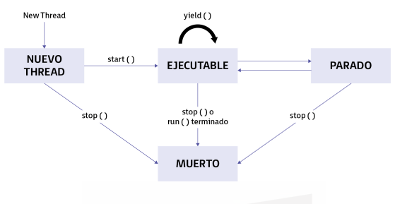 Al igual que los procesos, los hilos tienen un ciclo de vida en el que van pasando por diferentes estados.