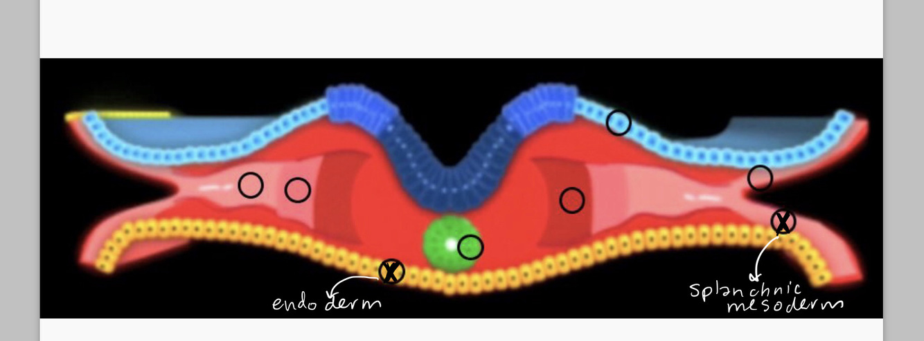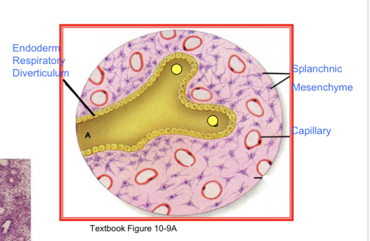 Endoderm: creates the pharynx (cranial foregut) > respiratory diverticulum > forms the epithelial lining of: larynx, trachea, bronchi, and lunga.