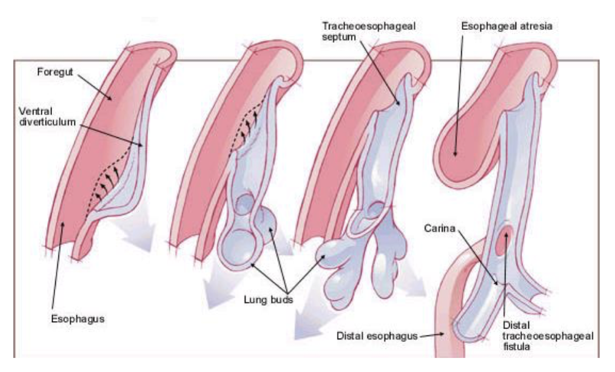 Esophageal atresia/transesophageal fistula - this is a failure of the separation between the esophagus and the trachea.