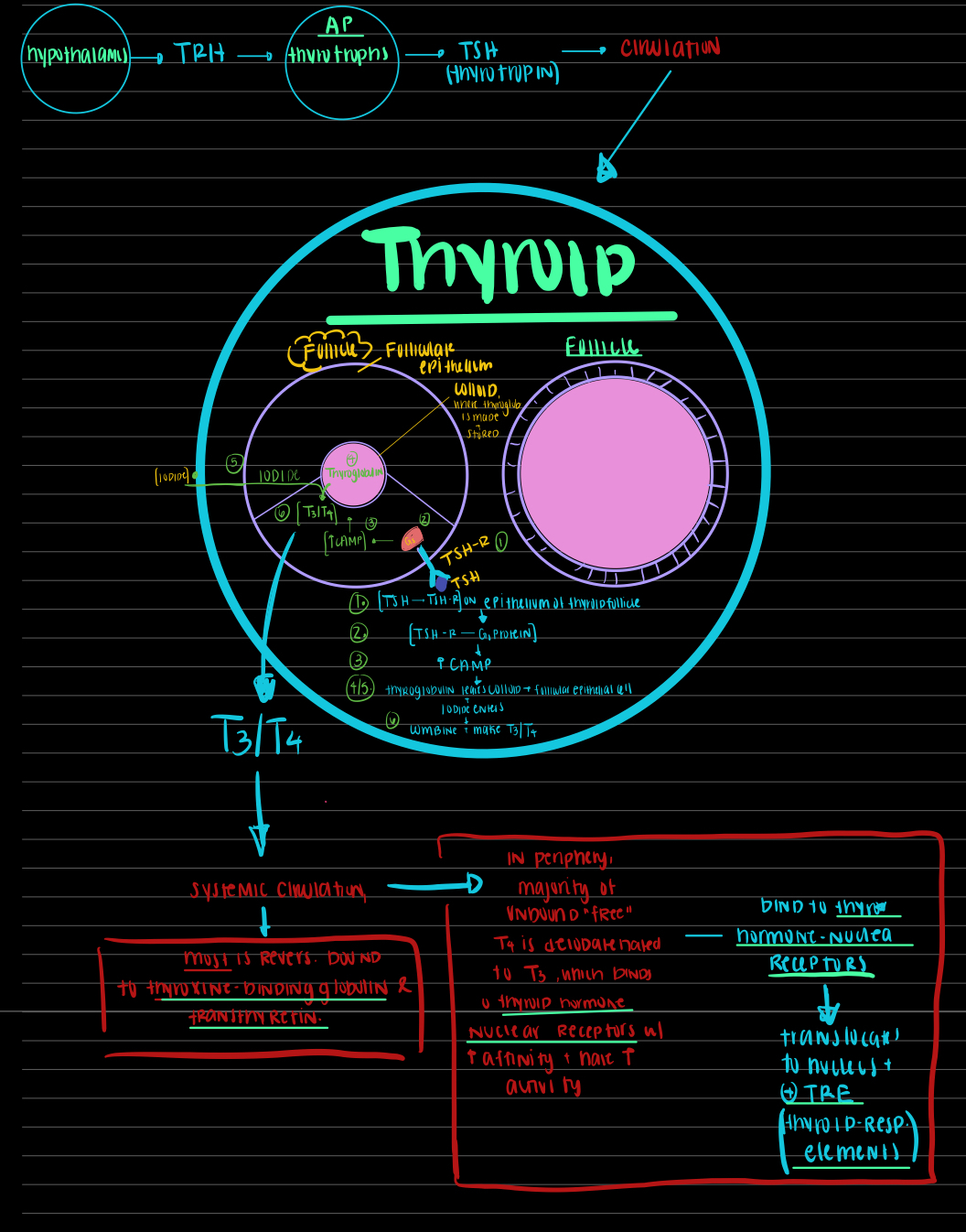 Goitrogens: [↓ T3/T4 —> ↑ TSH —> enlargement of the thyroid].