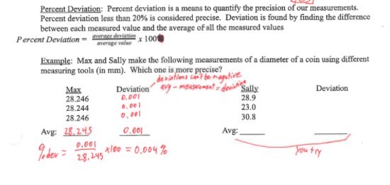 is a means to quantify the precision of our measurements. Percent deviation less than 20% is considered precise.