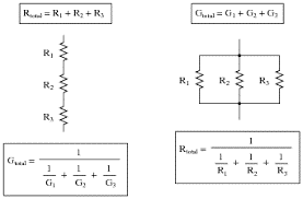 How are pd, current, conductance and resistances shared in parallel and series circuits?