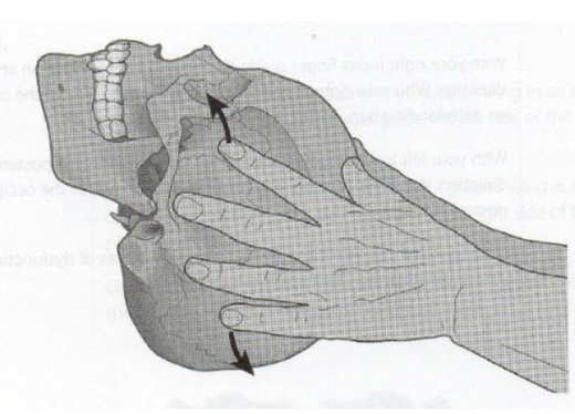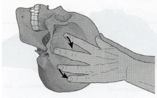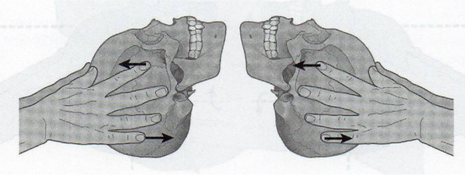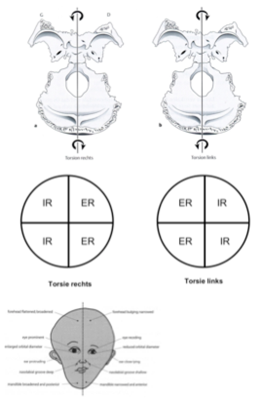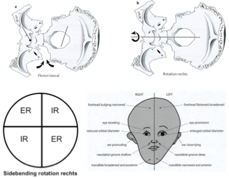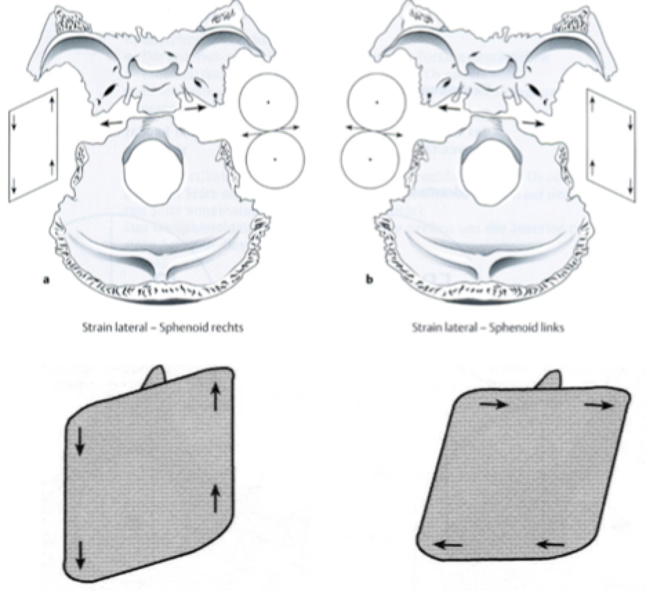 Opmerking: In het geval van een lateral strain in translatie is de impuls op ala major/frontale naar lateraal Re, op os occipitale naar lateraal Li. Bij langer bestaande lateral strain in translatie kan mogelijks een trapvorming gevoeld worden aan de laterale zijde van de schedel tussen os frontale/os sphenoidale enerzijds en os parietale/os temporale anderzijds.