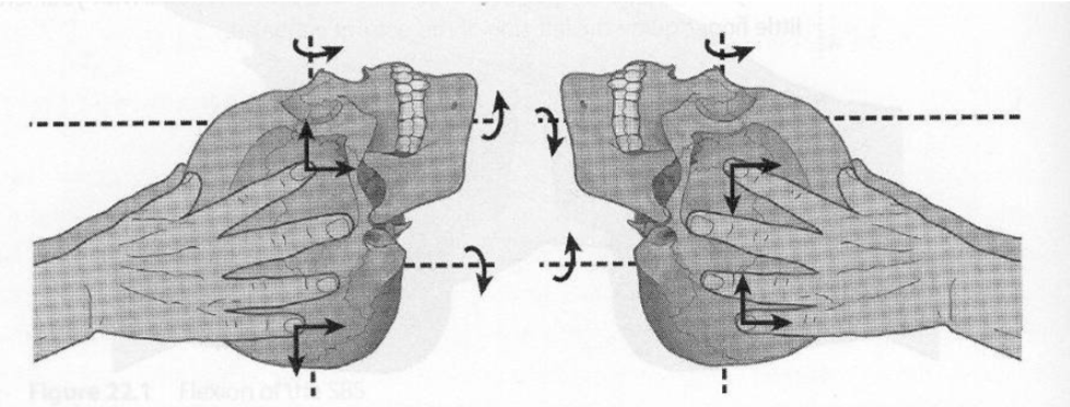 De andere dysfuncties van de SSB zijn onderliggend maar worden duidelijk telkens als de schedel zich in de flexiefase van het PRM bevindt. Dit kan de indruk geven alsof de schedel bv. zelf een torsie uitvoert, maar het gaat wel degelijk om een schedel met een torsie die flexie-extensie uitvoert.