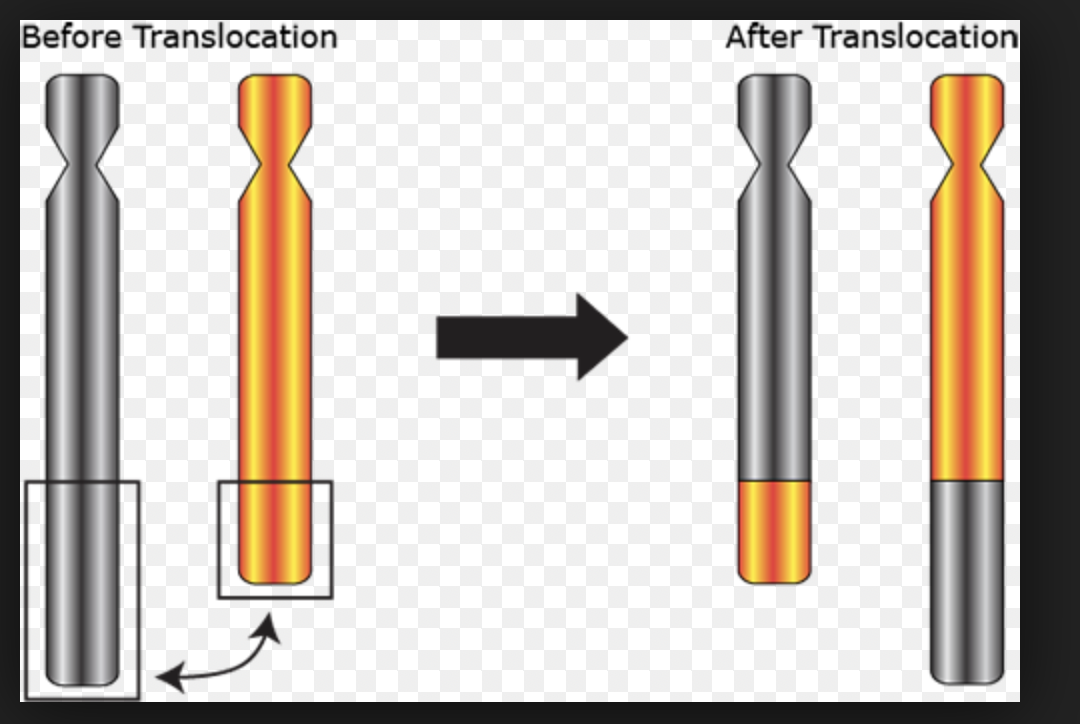a chromosome abnormality caused by rearrangment of non homologous chromosomes