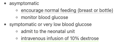 Transient hypoglycaemia (<2.6mmol/L) in the first 24 hours after birth is common and normal as babies can utilise lactate and ketones.