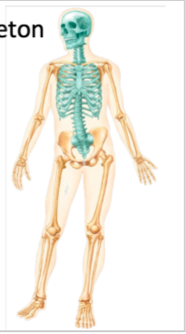 3 major regions: skull, vertebral column and thoracic cage