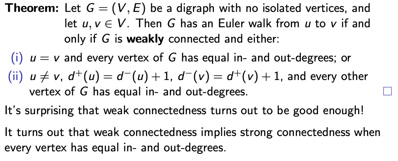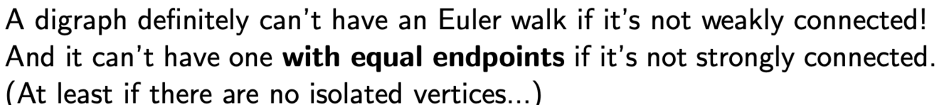 What is the relationship between the connectedness of a directed graph and it having a euler walk