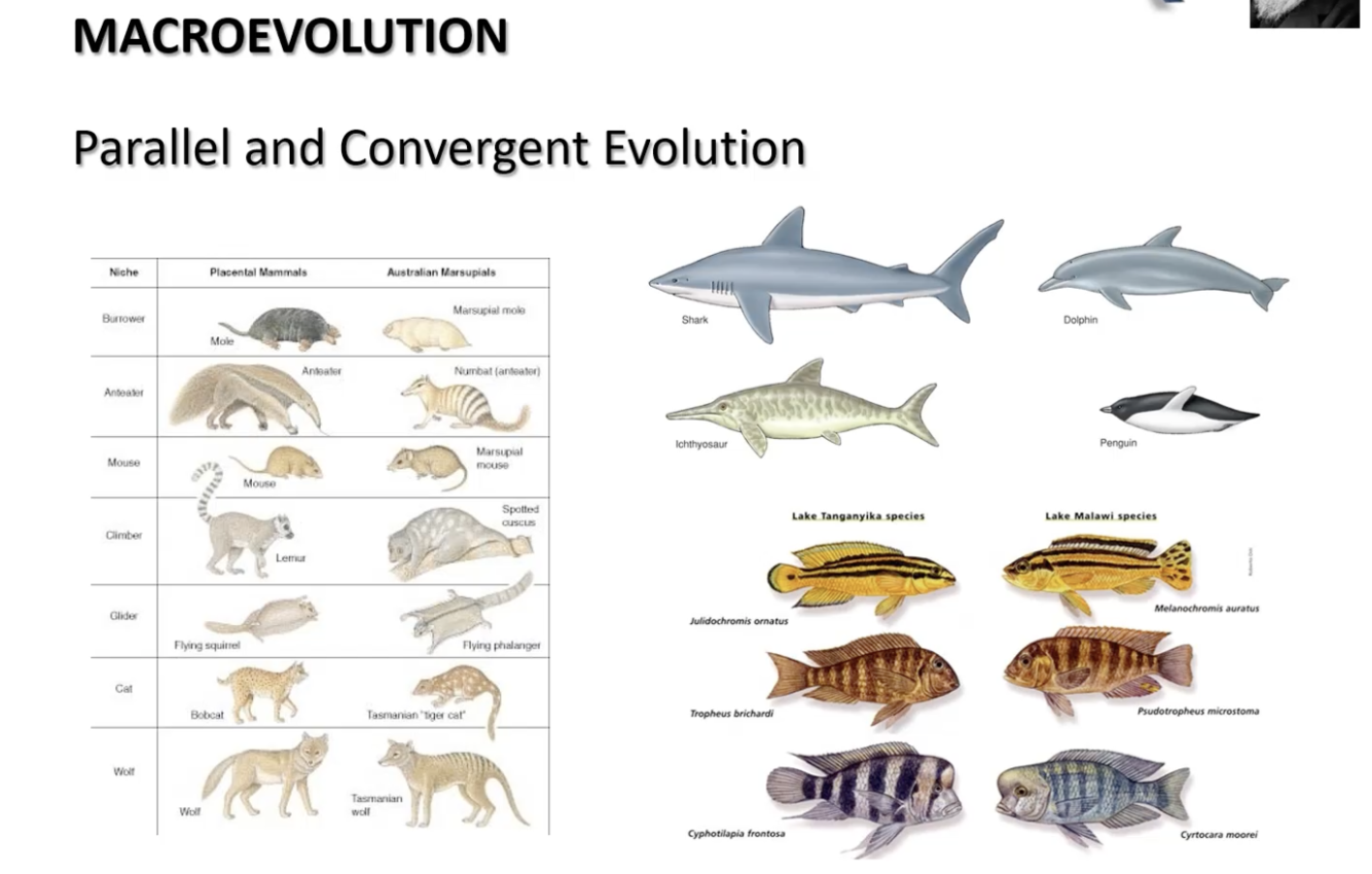 Ex: all placental mammals are more closely related to each other than to Australian marsupials although evolution and structures are more similar between the pairs