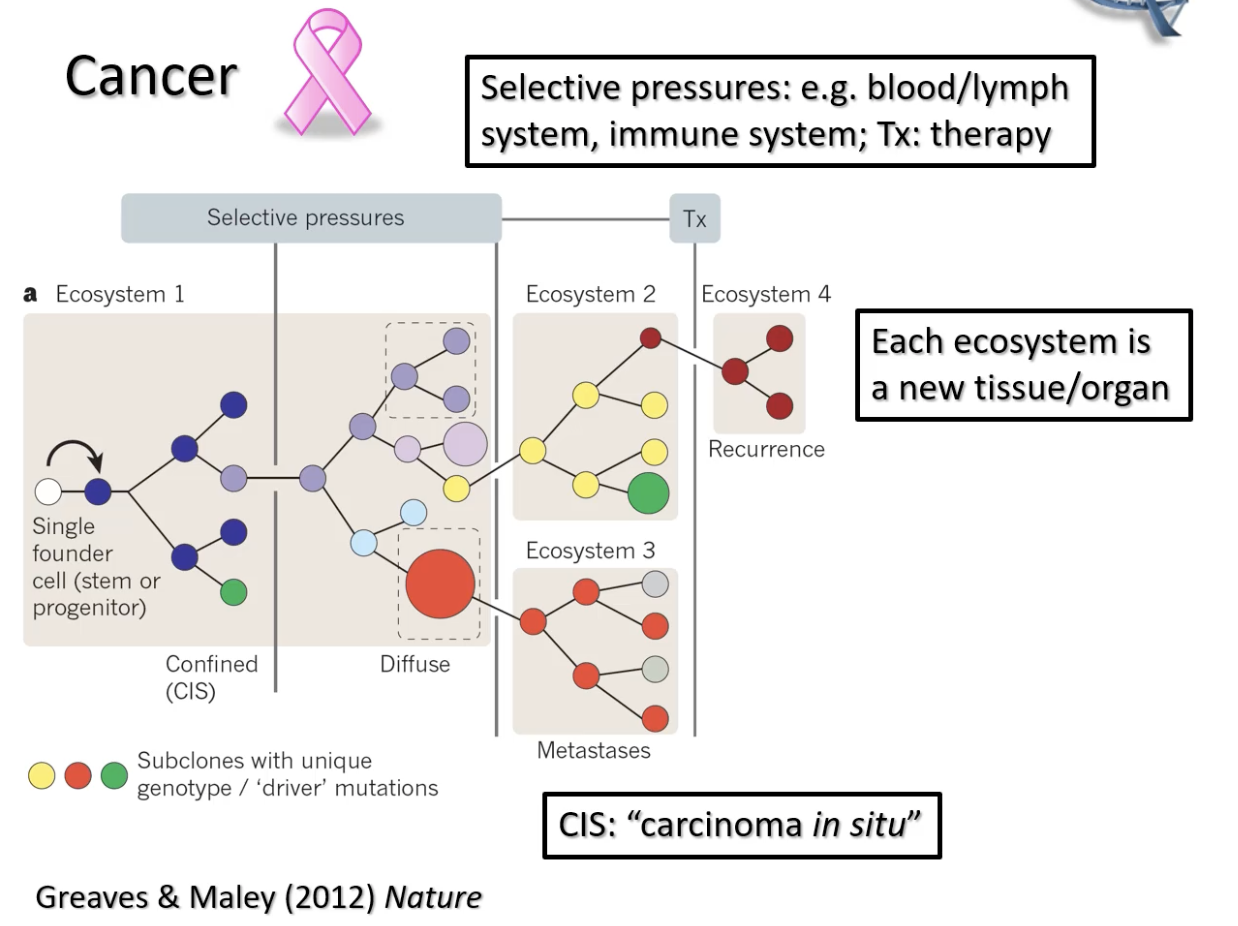 Selective pressures when moving from one organs to other (metastasis) - in blood fight off immunity
