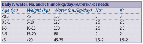 What are the paediatric electrolyte requirements?
