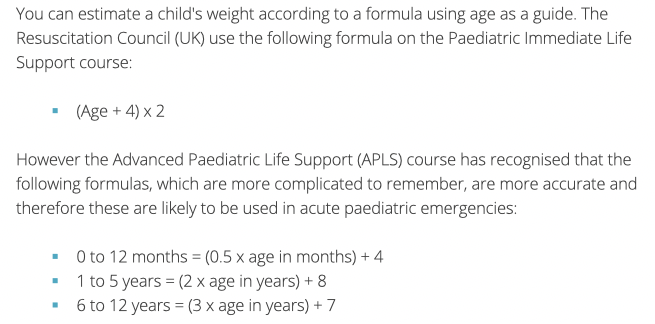In an emergency where you cannot weigh the child how do you get an estimated weight?