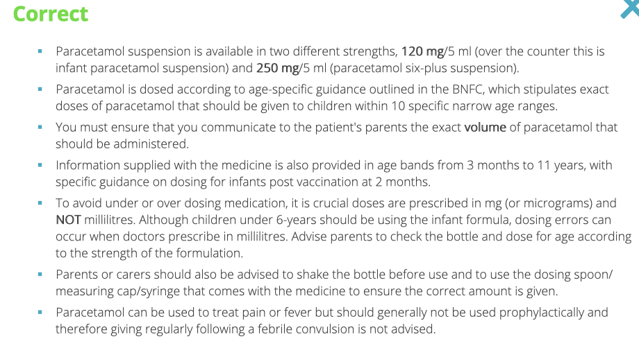 How is paracetamol prescribed in children?