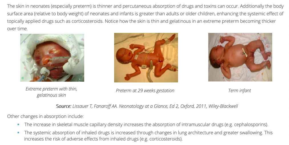 How is absorption in neonates different to infants?