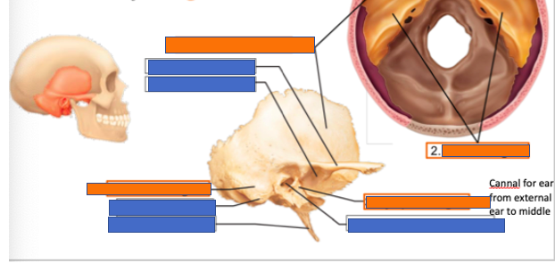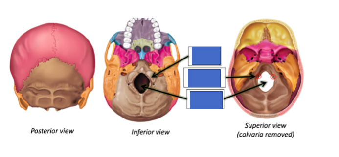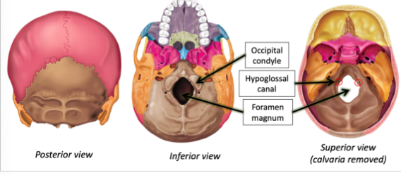 (condyles = rounded articulating surface since its occipital bone its the occipital condyle)