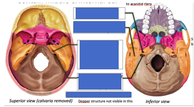 ** Jugular foramen: for internal jugular nein and CN IX, X, XI