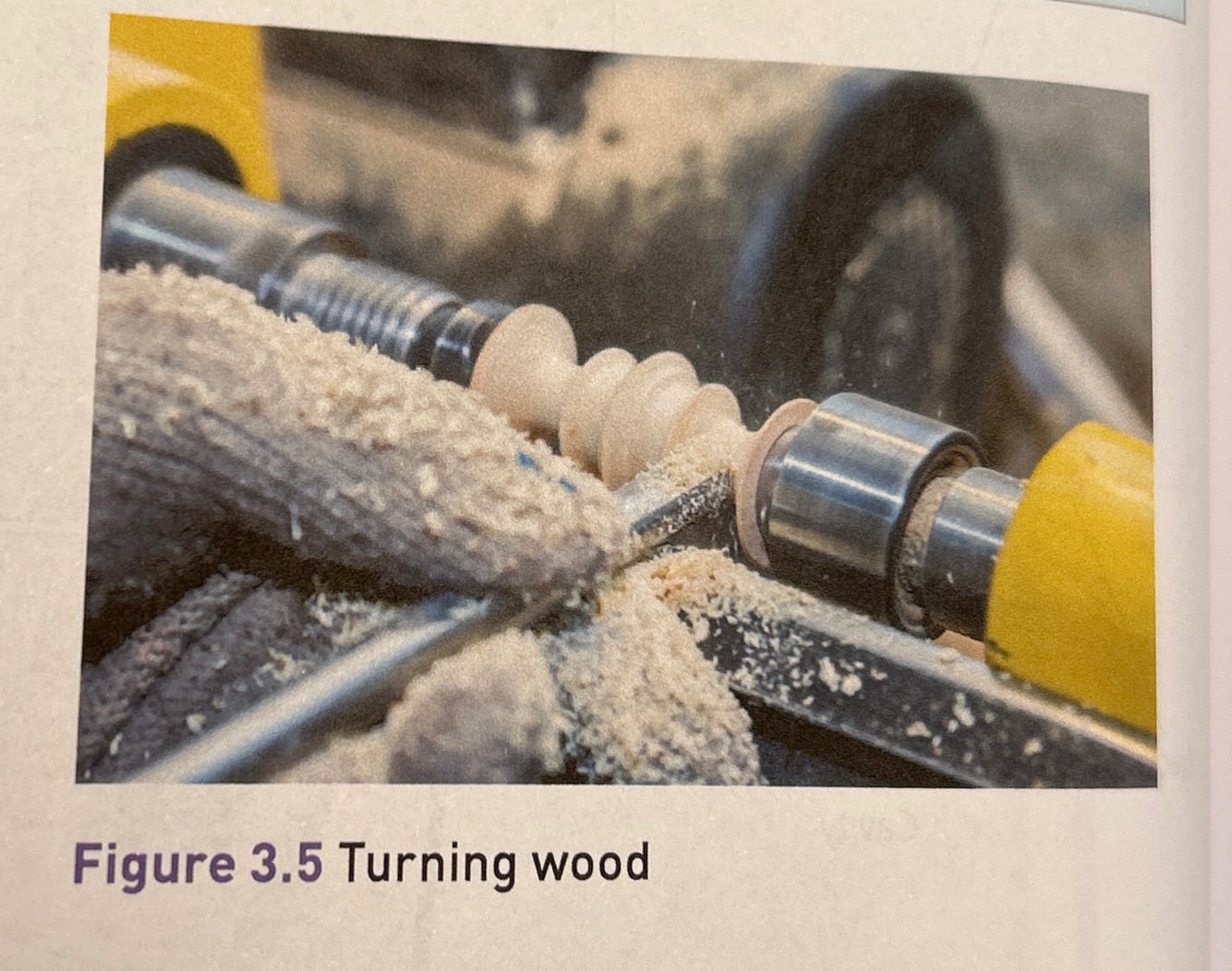 Turning uses a lathe and can be used for metal or wood and can also be an CNC process