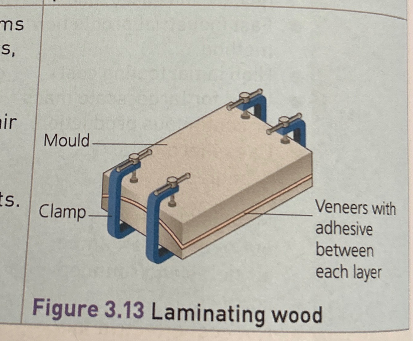-wood has adhesive applied then is bent over a former and when dry they form a thicker board in the shape of the former