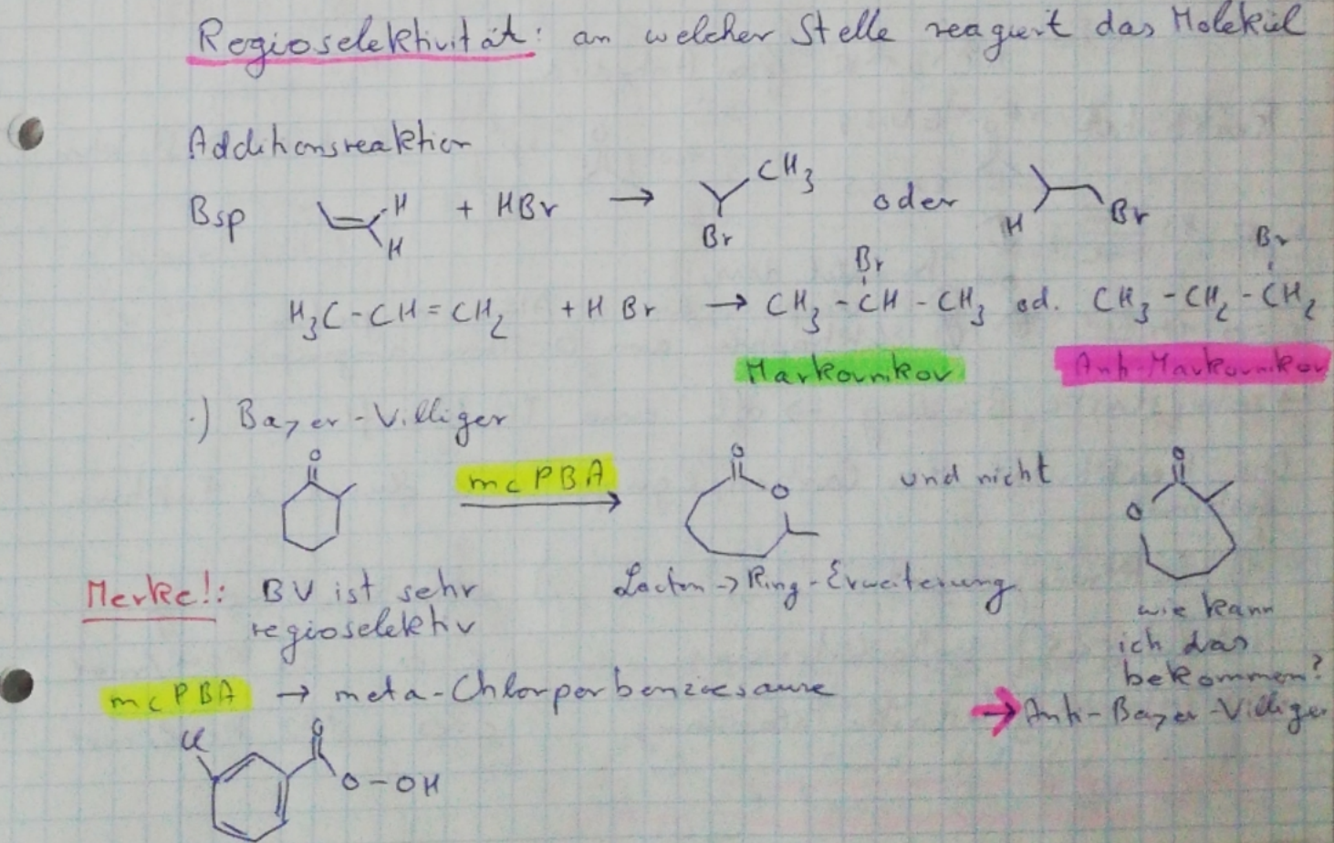 Zeige es anhand von Markovnikov und Bayer Villiger