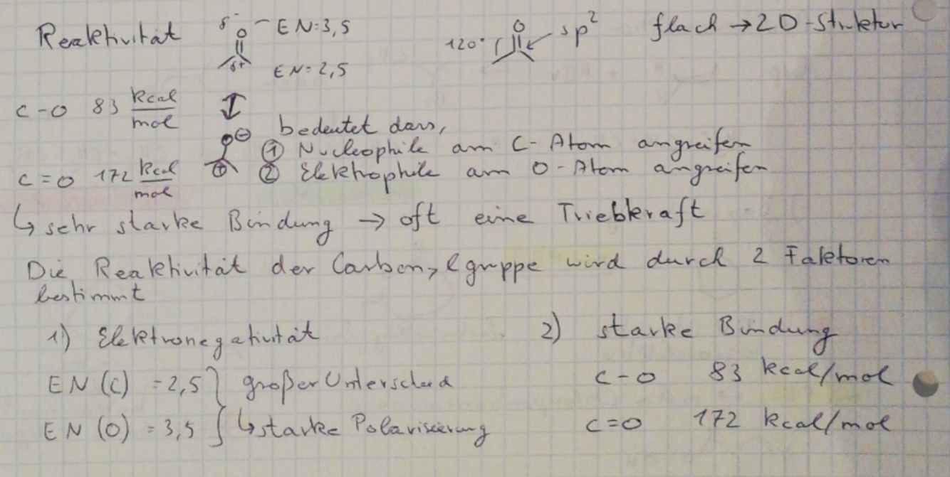 Was ergibt sich aus der Reaktivität der Carbonyle?