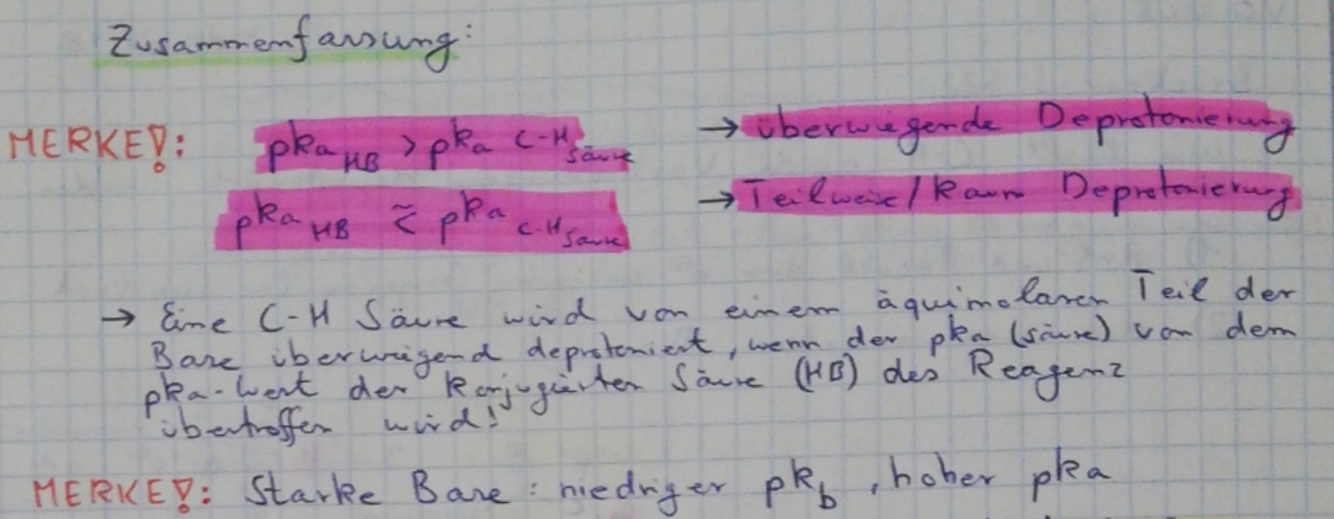 Fasse kurz zusammen, was wodurch deprotoniert werden kann!