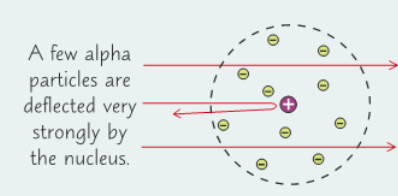 • Particles passed straight through gold & only small no. of particles were deflected backwards (pulm pudding model said = alpha particles would be deflected by the positive ‘pudding’ in atom)