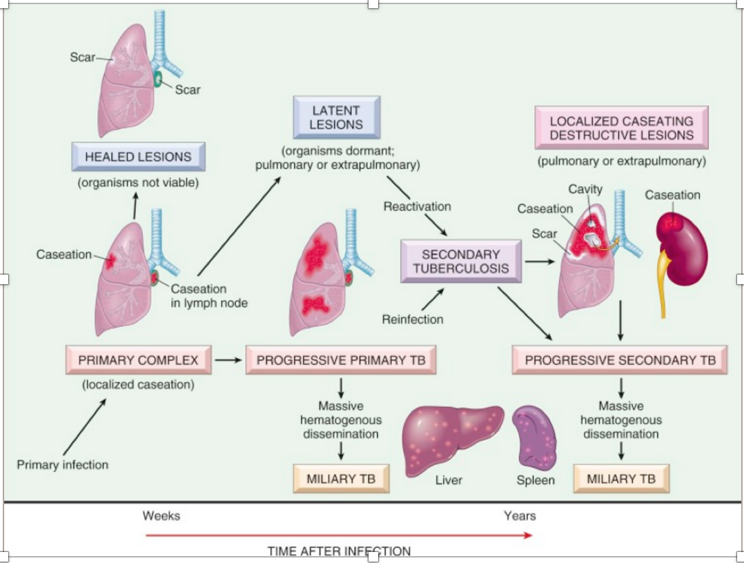 What is the term for primary TB infection that goes dormant for awhile then begins to actively spread?