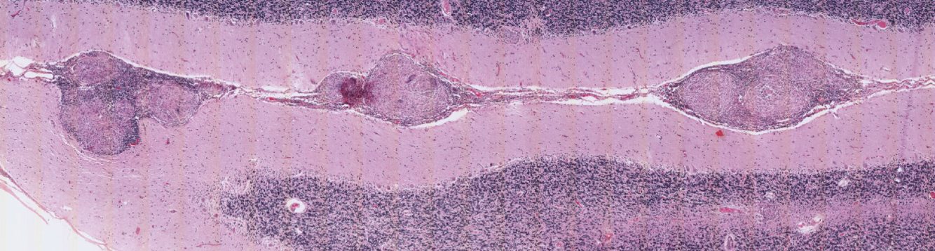 Granulomas of the meninges, present in a patient with sarcoidosis