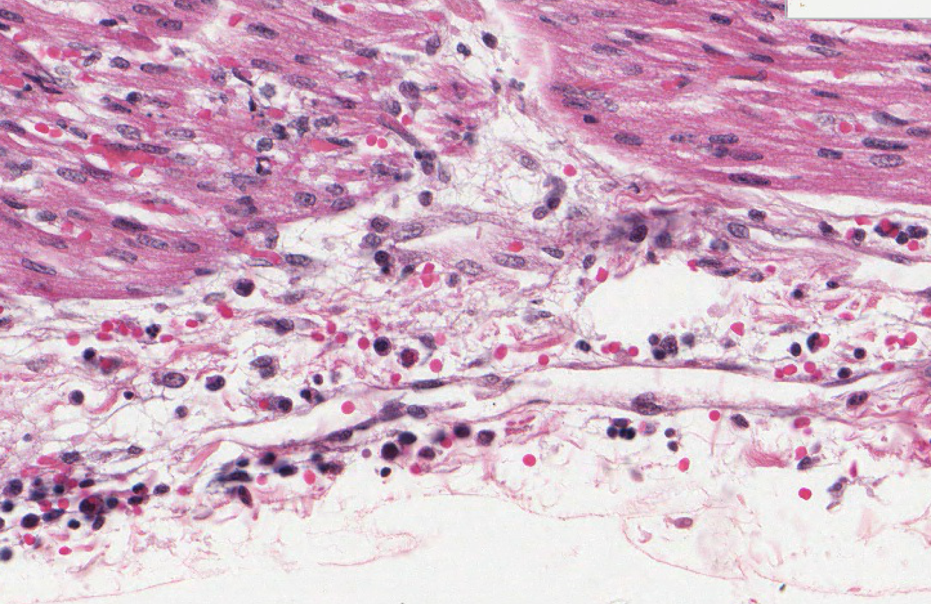 How would you characterize or describe the inflammatory response to the virus in the heart?