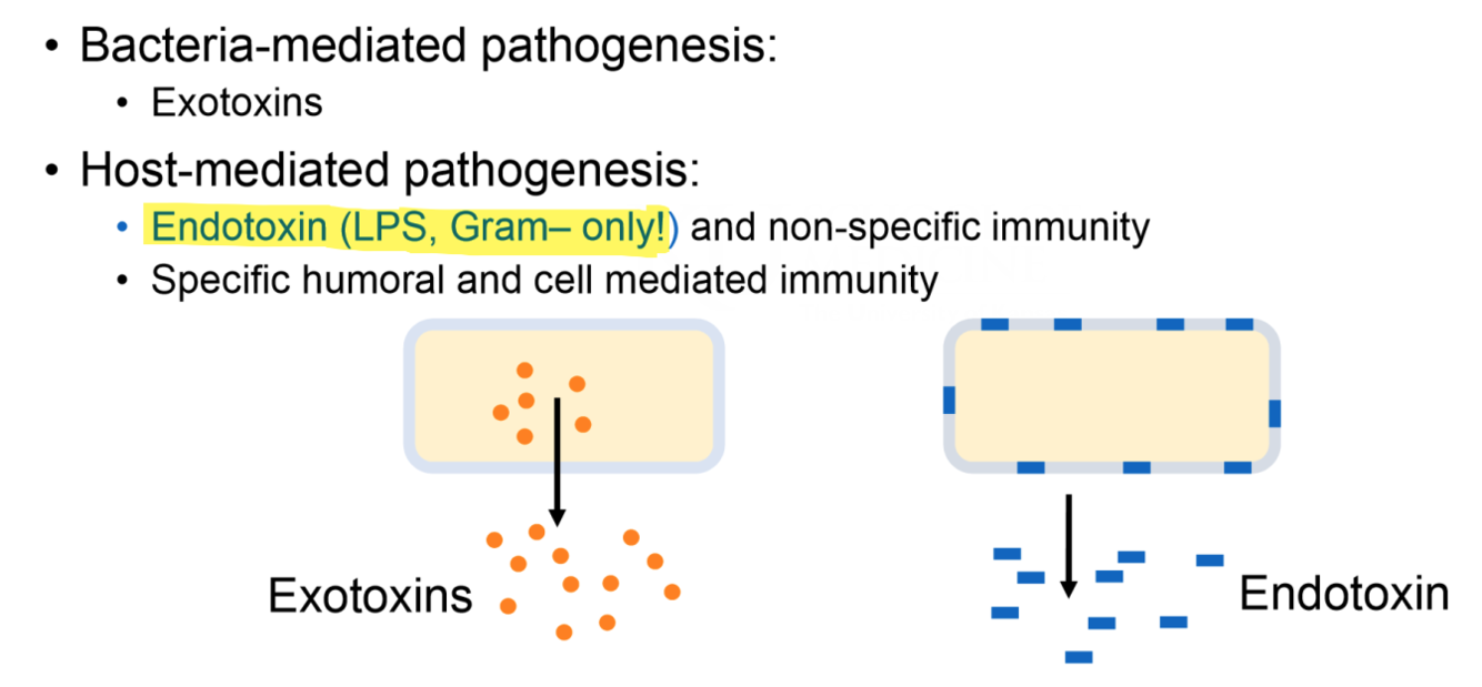 Host-mediated pathogenesis = endotoxin (LPS, gram - only)