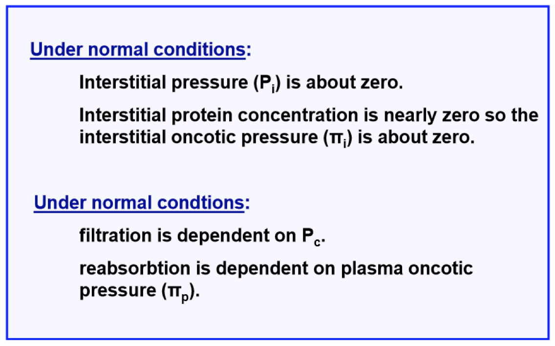 Under normal conditions what is the biggest determining factor for filtration and reabsorption?